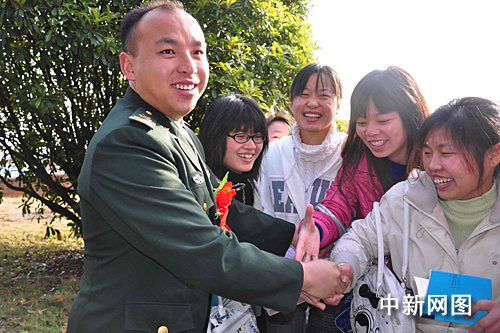 中新網(wǎng)南昌3月26日電(王劍 張曉朦) 3月26日,華東交通大學(xué)“日新論壇”上大學(xué)生們討論的焦點(diǎn)不是“周董”,也不是NBA的比賽,而是“槍王”何祥美。此前一天,“何祥美同志先進(jìn)事跡報(bào)告會(huì)”在該校舉行,何祥美被現(xiàn)場(chǎng)女大學(xué)生高呼“英雄哥哥”并索要簽名。