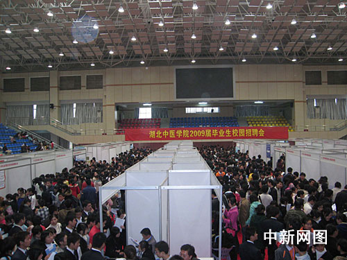 中新網武漢11月22日電 (艾啟平 李飛)為緩解應屆畢業生嚴峻的就業形勢,11月22日,由湖北人力資源中心(方陣人力資源集團)、湖北中醫學院聯合舉辦的免費校園招聘會在該校體育館舉行,來自湖北省內外100家醫療機構、醫藥企業、醫療器械公司等可為2009屆畢業生提供近1500個工作崗位。