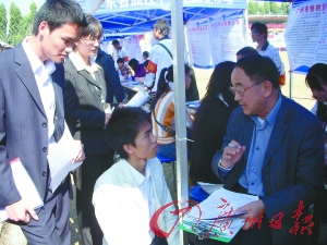 在一家生產(chǎn)和銷售模型零配件的公司攤位前,一群人圍在一位長者跟前。長者是這家模型公司的主管,公司要招機械設計制造、會計、物流管理等崗位7人,但排了長長的一條隊。長者戴著眼鏡,手里握著筆,一邊與應聘者和風細雨地聊,一邊在簡歷上圈圈畫畫。來自南華工商學院物流專業(yè)的楊同學半蹲在長者面前,足足面試了15分鐘。事后楊同學說:“他讓我對倉庫的整個流程做一個設計,寫成一個報告,一星期內(nèi)發(fā)郵件給他。” 接下來的一位女孩面試,長者問她可不可以做倉務,女孩表示可以;長者又問每天要提15公斤東西上下樓100次能否承受,女孩勉強表示可以;長者又告訴她公司的工作時間長,可能沒時間談戀愛怎么辦?女孩一時語塞。