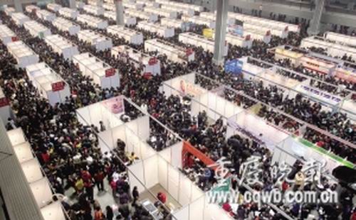 沙坪壩區人才市場舉行房地產開發類專場招聘,結果進場的大型知名地產開發企業為零,一個售樓員職位,上百人搶。