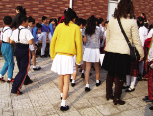 昨天下午,記者和宋女士一起來(lái)到比賽所在的虎山路小學(xué),在這里,三十多支參賽隊(duì)伍的上千名學(xué)生都要穿著夏裝跳集體舞。