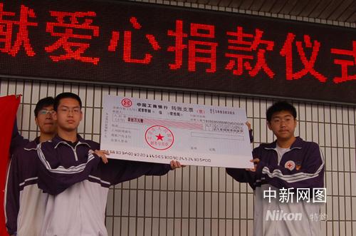 中新網5月16日電 題:北京一中學生18年攢下10萬元零用錢 全捐四川災區