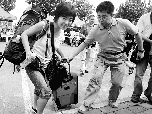 背著大大的登山包,拖著兩個行李箱,昨日下午,蔣方舟一出現在清華大學新聞與傳播學院報到處,立刻成了現場關注的焦點。昨日,是清華大學新生報到首日。蔣方舟,這個7歲開始寫書,目前已出版9本著作、被譽為“中國專欄小天后”的湖北女孩,被清華大學降60分錄取。昨日,她表示,希望入學后能真實地體驗生活。