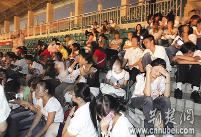 記者當即趕到位于江夏區(qū)大花嶺的該校,學(xué)生們的情緒很激動。“招生簡章上明明有護理學(xué)專業(yè),現(xiàn)在為何突然取消?”王同學(xué)說,他們就是沖著該專業(yè)來讀書的,現(xiàn)在要他們轉(zhuǎn)其他專業(yè),他們無法接受。直到昨晚7時許,近200名學(xué)生坐在操場的看臺上不愿離去(如圖)。一名姓嚴的家長聞訊趕來,他氣憤地說:“校方太不負責(zé)任了,事先沒有任何溝通,孩子們怎能不難受!”