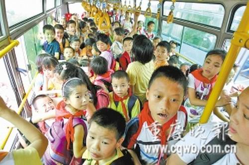 為解決進城務工人員孩子的行路難,渝北區(qū)仁睦小學從“對口幫扶學!钡谌龑嶒炐W租來一輛校車,放學時負責送師生們回家。然而,他們卻忽視了安全——準載50人的校車竟然實載了120人!