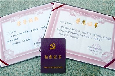 小吳的“優(yōu)秀畢業(yè)生”等證書
