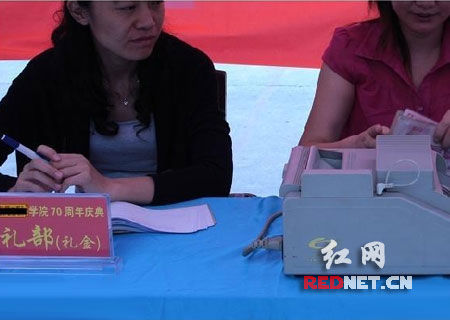 10月28日,有網(wǎng)友在紅網(wǎng)論壇發(fā)布一篇題為《某大學令人汗顏的校慶 現(xiàn)場點鈔機一字排開》的帖子,內(nèi)容是湖北民族學院建校七十周年慶祝大會現(xiàn)場,網(wǎng)友對會場擺放的點鈔機產(chǎn)生了興趣,并戲稱這是“最雷人的高校校慶”。