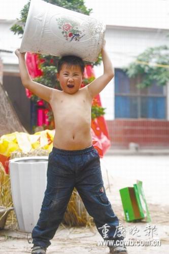 開縣有個6歲男童,他1歲零4個月時,就提起了5公斤重的東西;5歲時,背起了70多公斤重的母親;現在,更是輕松背起了體重93.5公斤的大人……在當地,他有個雅號,叫“小小大力士”。
