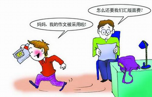 昨日(12月30日),住在禾祥西路的林先生向本報反映,他的兒子涵涵(化名)在思明區一所小學上五年級。今年11月中旬,林先生家里的信箱收到一封信,內容寫在一張印有“小學生學習報”標志的信紙上!吧厦嬲f我兒子一篇題為《可愛的小狗》的作文被《小學生學習報》看中,將被刊登在12月下旬的高年級版面上,但需收取編審費和光碟費233元,還留下了一個工行賬號!绷窒壬榻B,信上還說,作文刊發后會寄來一份刊登孩子作文的報紙、一張DVD光盤及榮譽證書。信里的內容特別強調發表文章對激發小孩的寫作興趣、提高孩子的自信心很有幫助。