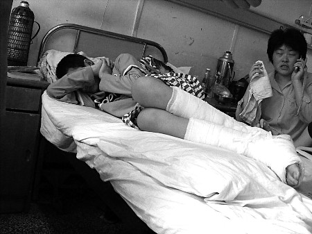 病床上的小峰臉上稚氣未脫,神情輕松,而莊女士則一臉的憂愁。一個多月連續陪床使她看起來非常疲憊。