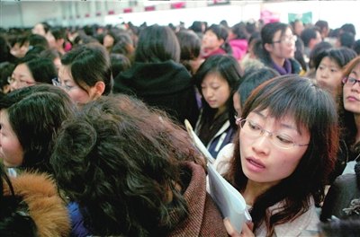 昨天(4日)上午9點,女大學生專場招聘會在北京市畢業生就業市場舉辦。此次招聘會共有50家企事業單位參加,600個崗位提供給前來應聘的女大學生。市人事局畢業生就業服務中心統計,截至下午2點招聘結束時,約5000人參加招聘,平均8人爭取1個崗位。