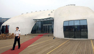 造型別致的白色海星形狀售樓處,統一穿著“海軍軍裝”的售樓員,魚形的建筑,海洋主題藝術館……據中國指數研究院統計,位于東四環的“林達海漁廣場”,是北京在售商品房項目中外形最怪異的一個。