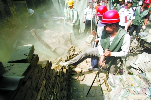 上午10時(shí)許,幫拆違法建設(shè)的活動(dòng)正式開(kāi)始。李廣民說(shuō),就是這67處今天計(jì)劃拆除的違法建設(shè),也有居民在昨天開(kāi)始進(jìn)行自拆了,加上今天早晨進(jìn)行自拆的,占了總數(shù)的70%左右,對(duì)于那些拒不自拆或是無(wú)力自拆的居民,東鐵營(yíng)街道請(qǐng)了專(zhuān)業(yè)拆除公司,幫助他們拆除。