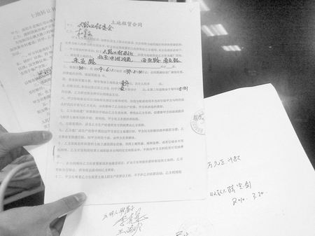 謝好子說,在今年2月的一天,他接到了鎮長郭玉瑞的電話,要求帶上村委會的公章到鎮政府。到了鎮政府,郭玉瑞直接拿出一份土地轉讓補償協議,要求將大路口村的70畝土地轉讓給洛陽國裕房地產開發有限公司,上面蓋有該公司的合同專用章,代表人簽字處已經寫上了陳躍通的名字。這份合同要求將大路口村的70畝土地以每畝25萬元的價格轉讓給開發商。謝好子提出25萬元的價格太低,且沒有經過村民委員會的同意。后經過簡單的協商,郭玉瑞提出將每畝土地的價格上升到30萬元,并直接在合同上做了改動。目前,村里也沒有見到過這份合同簽訂后對方的任何款項。