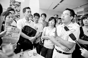 9月5日,80多名購房者在浙江省世界貿(mào)易中心舉行了抗議,浙江萬科南都房地產(chǎn)有限公司副總經(jīng)理饒永生第一次與萬科業(yè)主“面對(duì)面”,并承諾第二天上午公司總經(jīng)理傅明磊與業(yè)主懇談。照片和視頻傳到網(wǎng)絡(luò),網(wǎng)民反映不一,一部分人認(rèn)為房價(jià)回調(diào)是正常的,愿賭服輸;另一部分人則表示同情購房者。
