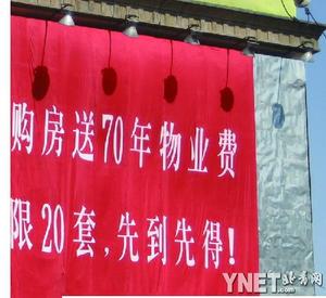 “終身免物業費”、“購房送70年物業費”,在今春一派樓市回暖的景象中,北京許多樓盤相繼推出新的促銷熱賣舉措。近日,京城多家房產網站上,都出現了部分樓盤購房全免物業費的消息,一時成為購房者和業內人士關注的話題。