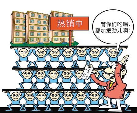 在北京市朝陽區東八里莊的一個居委會里,張大媽近日又開始忙起來了,同往年一樣,她又接受了東四環幾個待銷樓盤的邀約,組織一批老年人到幾個售樓中心“簽約”,一天管吃喝還凈掙50元。據介紹,他們有時還要到國貿春季房展會上演“訂房”,前臺簽單,后臺拿錢走人。(4月6日《人民日報》)