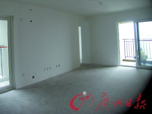 小區里綠化早已到位,房子也早已建好,所有的電梯都已經可以正常使用。記者隨意走進了小區11棟35C單位查看,這是一間約90㎡的三室一廳,有雙陽臺。這是小區里面積最小,也是最普通的戶型之一。