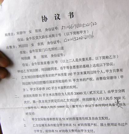 記者問,“聽說這套房子已經漲成4300元/平方米了。”“漲成4300元/平方米了?我不知道!這是人家的事,與我無關。”羅勇凜然地說:“既然事前已經說好了,雖然房子名義上是我的,但我只會要那1萬塊錢,不想多要!”