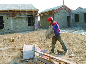去年12月18日下午,一棟毛坯平房院外,兩名工人正在拆建房的模板和腳手架。