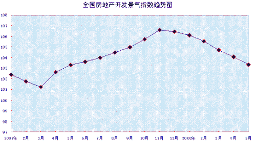 中新網(wǎng)6月18日電 據(jù)國(guó)家統(tǒng)計(jì)局網(wǎng)站消息,5月份,“國(guó)房景氣指數(shù)”為103.34,比4月份回落0.73點(diǎn),與去年同月基本持平。