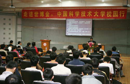 作為中國2010年上海世博會安徽宣傳周的重要活動——“中國的機遇、世界的盛會”世博主題講座在中國科技大學開講。上海世博局國內參展顧問、世博會宣講團專家黃耀誠系統地介紹了世博會的歷史和舉辦意義,并著重介紹了上海世博會的籌備情況。