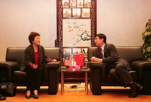 4月25日下午,馬來西亞旅游部部長黃燕燕(Ng Yen Yen)、馬來西亞駐滬總領事阿茲米爾扎比迪(AZMIL ZABIDI)訪問上海世博局。上海市政府副秘書長、上海世博局局長洪浩會見來賓,雙方就上海世博會的籌備進展及馬來西亞的參展事宜進行了交流。