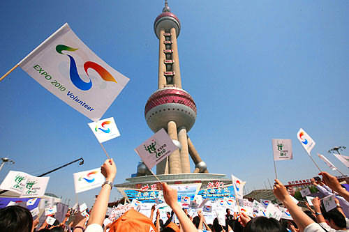 在東方明珠廣場,1500多位曾在上海舉辦的歷次重大活動中奉獻愛心的志愿者和各界市民代表齊集于此,參加世博會志愿者招募工作啟動儀式。啟動儀式前,上海市領導與志愿者代表們一起觀看了在北京天安門廣場舉行的中國2010年上海世博會天安門計時牌揭幕儀式的現場直播。