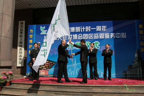 5月6日消息:5月1日,上海海關舉行迎世博倒計時一周年“上海海關駐上海世博會園區監管服務中心”掛牌儀式暨“為世博護航,展國門風采”文明服務宣誓活動。上海市政府副秘書長、上海市迎世博600天行動窗口服務指揮部常務副指揮沙海林和上海海關副關長于申共同為上海海關駐上海世博會園區監管服務中心掛牌。沙海林向上海海關授予“迎世博、窗口行”行動旗幟,并向上海海關迎世博優質服務示范員代表頒發胸牌。