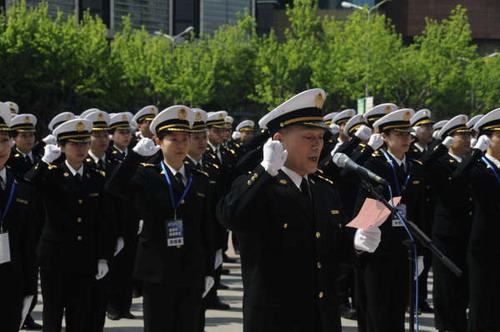 百余名關員代表進行了迎世博文明服務宣誓,表達了全關干部職工做世博會文明使者,為世博護航、展國門風采的決心。會上,浦東海關還舉行了世博會物資通關演示。