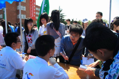 5月1日,中國2010年上海世博會倒計時一周年的日子,上海交通大學“中國2010年上海世博會”志愿者招募啟動暨上海交通大學上海世博會工作站成立儀式,在交大閔行校區內舉行,1000余名學生來到現場進行咨詢。