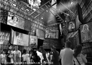 進入家庭展區后,觀眾滿眼都將是這些家庭成員的影像,這些影像由投影機投射到許多鏡子上,再互相反射,呈現“無處不在”的感覺。在工作展區,一個屏幕可以自動旋轉,用來表現六個家庭的不同工作情況。在交往展區,則把六個家庭的社會交往情況投射到天幕上。展區屋頂上垂下一條條桿子,觀眾觸摸一條桿子,相應一條某處的桿子就會發亮,顯示人們之間交往的感覺。在學習展區,將模擬一個很大的書柜,展區空間會變色,顯示從早到晚的變化。在健康展區,屏幕上將表現各個家庭怎樣從事醫療、如何維護健康等。展覽結尾處是六個家庭在屏幕上和大家揮手說再見。