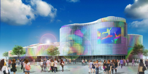 在外觀方面,民企聯合館大膽采用了曲線型設計,具有豐富的色彩和表現形式。根據參觀者觀看角度的不同以及同一天里陽光照射方位的變化,展館外觀還會隨之呈現出多姿多彩的景象和生動有趣的表情。到了夜晚,除了影像之外,還配以照明、音響以及特殊演出手法,整個展館流光溢彩、精彩紛呈。據悉,擔任該項目總承包商的是曾經承接2005年愛知世博會日本政府館出展項目、具有豐富世博會經驗的日本三大廣告公司之一——ADK。