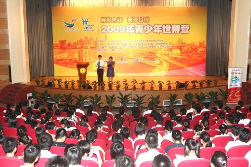 8月8日上午,來自上海80所市、區實驗性示范性中學以及江浙等省多所重點中學的500名優秀中學生,參加了在上海市復興高級中學內舉行的2009年青少年世博營開營儀式暨重點中學學生會主席論壇,倡議青少年“全面投身世博,奏響青春樂章”。