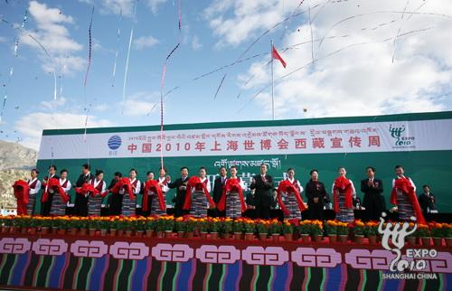 8月22日上午,金色陽光灑滿美麗的雪域高原,在日光城拉薩市中心,中國2010年上海世博會(huì)西藏宣傳周活動(dòng)在布達(dá)拉宮廣場前啟動(dòng),2000多名西藏各界民眾歡聚在廣場前歡迎世博會(huì)吉祥物“海寶”落戶雪域高原。西藏自治區(qū)黨委書記張慶黎,西藏自治區(qū)黨委副書記、自治區(qū)主席向巴平措,中國貿(mào)促會(huì)會(huì)長、上海世博會(huì)組委會(huì)副主任委員萬季飛,上海市政協(xié)副主席、上海世博會(huì)執(zhí)委會(huì)副主任周漢民和西藏自治區(qū)領(lǐng)導(dǎo)郝鵬、吳英杰、崔玉英、秦宜智、宮蒲光等出席了今天的宣傳周啟動(dòng)儀式。