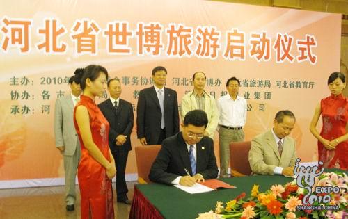 上海世博會(huì)河北世博旅游啟動(dòng)儀式12日在石家莊市舉行。啟動(dòng)儀式上,上海世博局與河北康輝國(guó)際旅行社正式簽署了世博游協(xié)議。