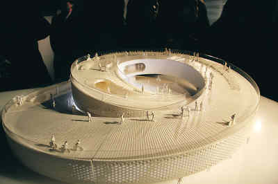 丹麥館位于世博園C區,與芬蘭、冰島、挪威和瑞典等國的展館毗鄰而居,共同構成一派“北歐風情”。在展館內你的孩子不僅能在操場上自由自在地玩耍,而且還能享用一頓野餐,并讓“海港”的海水輕拂腳趾。丹麥館環繞“海港”而立。整座建筑是一個巨大的鋼結構,其雙車道螺旋坡道包含人行道和自行車道,從地面盤旋兩次到達12米的高度,又盤旋而下回到地面。因此,您能夠用兩種不同的速度,由表及里地欣賞丹麥館——您既可以安步當車,細細體味周遭的一切,也可以騎上自行車,風馳電掣般地掠過城市。展館的屋頂覆蓋一層淺藍的人工材料,展館內的地面也設有這種藍色自行車道,可供自行車穿行于整棟建筑之內。除此之外,丹麥藝術家設計了一種互動長凳安放于丹麥館的里里外外,白色的鋼制長凳也可隔開行人和自行車。