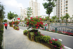 據(jù)悉,世博會(huì)期間,游客將從“歡慶鑼鼓、喜迎來客”等為主題的綠廊、彩練中走進(jìn)世博園區(qū)。定位于“綠廊、彩練、花島”的浦東南路已見雛型。