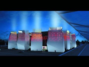 俄羅斯館占地6000平方米,是世博會最大的展館之一。它的外圍是12座不規(guī)則形狀的塔樓,聳立于草坪和水景之間,塑造出俄羅斯館傳統(tǒng)與現(xiàn)代相結(jié)合的外形。據(jù)V.P.Strashko介紹,“12”寓意著時間和生命的完整,塔樓紅、白、金三種顏色則分別象征著美麗、純潔和財富。此外,這些形狀不同的塔樓在功能上也各有分工,有的是餐廳,有的是俄羅斯城市風(fēng)采展示廳,其他的則是辦公區(qū)、貴賓廳、禮品店……在塔樓邊,還有一個露天咖啡廳。其中,兩座俄羅斯區(qū)域塔樓在世博會期間每兩周將舉辦聯(lián)邦主體推介展示活動,向參觀者展示俄羅斯各聯(lián)邦區(qū)域的特色;在創(chuàng)新塔樓內(nèi),俄羅斯館將通過展示城市基礎(chǔ)設(shè)施方面的最新成就,如潮汐電站工程,以展現(xiàn)俄羅斯當(dāng)代城市生活的整體圖景。