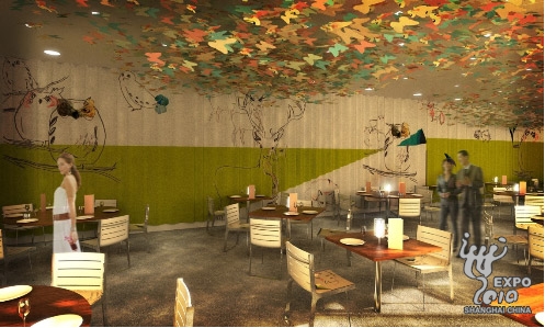 位于展館最頂層的“第六感”餐廳是法國館內不可錯過的一道風景。交由“蒙彼利埃雙胞胎”波塞爾兄弟經營的“第六感”餐廳完美地補充了法國館參觀體驗中的味覺亮點,參觀者將在其中度過難以忘懷的美食一刻。