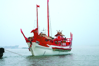 在已經(jīng)完工的上海世博會日本館里,有一個以“遣唐使”為中心的展區(qū),展現(xiàn)從中國流傳至日本的文化千年傳承的歷史演進,定于6月12日舉行的世博會日本館日,將會以重現(xiàn)歷史的方式來紀念那些為中日文化交流做出巨大貢獻的先驅(qū)。為此,日本角川文化振興財團投入巨資,領(lǐng)銜推出了“‘遣唐使船’再現(xiàn)計劃”,目前,依據(jù)歷史資料、按當年尺寸和結(jié)構(gòu)仿制的“遣唐使船”已在張家港市長明造船有限公司建成,經(jīng)水上調(diào)試后將于近日運回日本。
