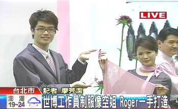 隨著上海世博將登場,由Roger所一手打造的臺北場館工作人員服裝造型也在今天對外展示,主要是以灰色調系,搭配上粉紅色調點綴,整體看起來相當亮眼。