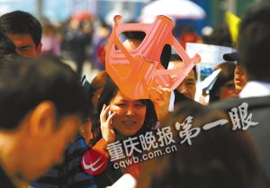在浦西園區(qū)上海聯(lián)合企業(yè)館前,排隊的圍欄設(shè)計成了弧線,觀眾只需稍稍將身子一仰,就可以將背包等靠在圍欄上,節(jié)省體力。在一些排隊較長的展館前,志愿者不時上前提醒游客,用地圖或衣服遮住頭部。