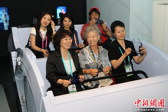 當“世博奶奶”乘坐的通往中國航空館二樓主展區的電梯門一打開,她便發出驚嘆之聲,隨即表示非常期待體驗中國航空館主展區的地乘4D展演系統,當乘坐無軌觀光車體驗過一段完美的飛翔之旅后,“世博奶奶”意猶未盡地說:“非常棒,感覺像身臨其境一樣。”