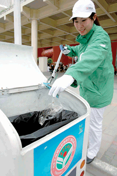 董磊有著五年的法國留學經歷,來世博園前在南匯一家企業從事人事工作。“今年初我所在的單位招募志愿者,服務世博會。作為一名土生土長的上海人,我立刻報了名。”董磊告訴記者,來世博園之前,他并沒有想到自己來這里的工作是和垃圾打交道。“當時我被分配的工作是做管理,但來到這里以后我才發現,由于人手等各方面因素,幾乎每天我們都要自己動手收運果殼箱。”董磊告訴記者,現在的工作雖然累,但是能夠為世博會服務,能夠讓自己得到鍛煉,他的心里非常高興。“來世博園之前,其實我就做好了心理準備,再苦再累也要上。”