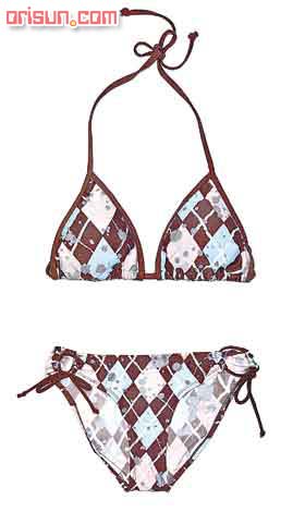 今年比基尼最大的特色,就是選用掛頸的設計,掛頸設計的好處除了可更有效固定泳衣不會走位,同時粗細不同的頸繩,也可幫助突出泳衣的風格。粗帶設計的掛頸設計感覺較年輕;細身設計相對較性感,所以在選擇泳衣時,可以將較多的注意力放在這個細節上。