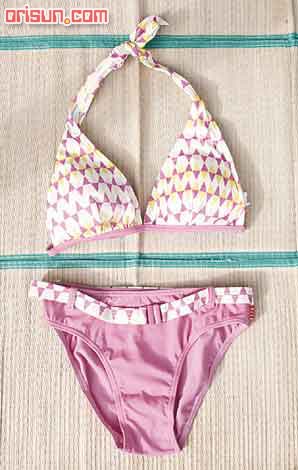 束帶的泳衣雖然性感,但相對地較易松脫,所以在打結時要分外小心,絕對不能太松,同時亦可打死結,會更加保險。下身方面,可選擇配上一條松身短褲,而特別配合泳衣設計的配褲,顏色鮮艷,選用了魔術貼取代拉鏈的設計,穿 時會更加方便。