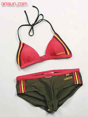 adidas泳衣不但保留了三點式設計,平角的剪裁亦一樣很運動。