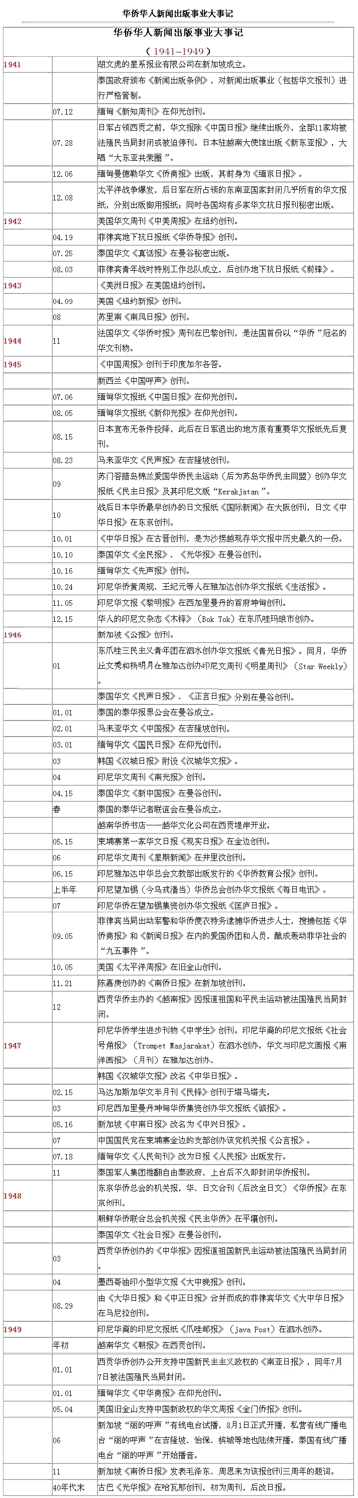 海外華文傳媒大事記
