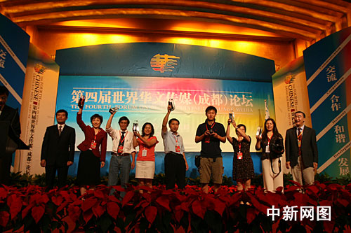 香港商報、臺灣東森電視臺、中國時報(臺灣)、臺灣TVBS電視臺、澳門日報。請獲獎者上臺領獎。